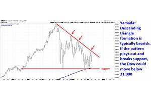 Famed technician Louise Yamada at LY Advisors warns that investors have been selling the rallies since the January peak, leading to a descending triangle formation on the chart, which is typically a bearish sign.