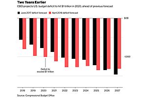 The U.S. budget deficit will surpass $1 trillion by 2020, two years sooner than previously estimated, according to the Congressional Budget Office.
