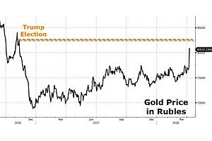 The price of gold in Russia has surged back near its highest since the US election in 2016...