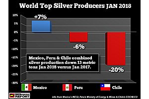 Silver mine supply from the world’s fourth-largest silver producer fell significantly at the beginning of 2018. According to Chile’s Ministry of Mines, domestic silver production in January declined 20% versus the same month last year. Chile’s silver production has been falling considerably since its recent peak in 2014. In just three years, Chile’s domestic silver...