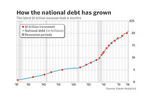 It has taken a little more than six months for the U.S. national debt to grow by a trillion dollars, a quick clip that has little precedent over the nation’s recent history. Here’s a look at how long it’s taken the debt to grow by that much in the past.