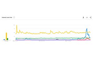 According to Google Trends: Gold still is the leading money in the world as it's been for Thousands of years.