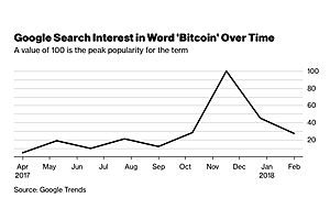Online searches for “bitcoin” fell 82 percent from December highs, according to Google Trends. Tweets that mention the coin peaked Dec. 7, at 155,600, and are now down to about 63,000, BitInfoCharts says. And the number of bitcoin transactions is off 60 percent from its record on Dec. 13, according to Blockchain.info.