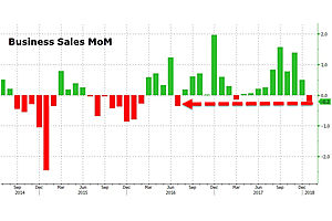 Business Inventories rose 0.6% MoM in January (es expected, so unlikely to impact Q1 GDP expectations) but Business Sales slumped 0.2% MoM - the biggest drop since July 2016.