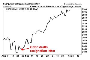 The financial media is awash with claims that Gary Cohn’s resignation as Chief Economic Advisor is triggering a market collapse. While it’s true that a market collapse is starting again, it has nothing to do with Gary Cohn. How do I know? Because Gary Cohn first wrote a resignation letter back in August 2017 in