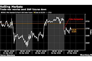 The resignation of Gary Cohn as top White House economic adviser roiled markets Wednesday, sending the dollar down against the yen and U.S. stock futures lower.