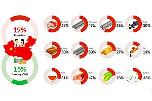 China’s commodity demand equals or exceeds that of the rest of the world combined.
