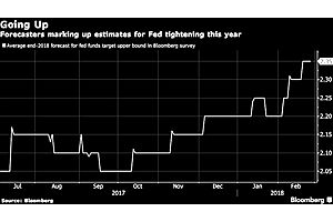 Equities tumbled another quarter percent after new Fed boss Jerome Powell's comments suggested the possibility of four U.S. interest rate rises this year rather than three.