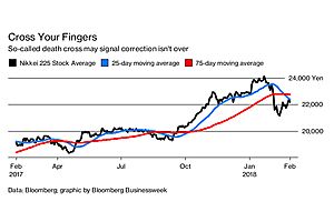 Nikkei 225 just formed a death cross after 25-day moving average crossed below 75-day average.