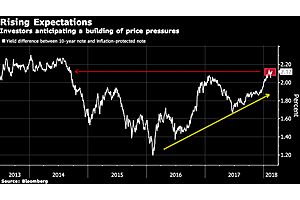 The short-term bullish setup indicates the investors expect the new Fed chair Powell to stick to the approach of gradually lifting rates, despite indications that inflation is perking up.