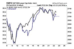Consider that high yield credit or Junk Bonds (HYG) have lead stocks from the January ’16 lows. HYG also peaked and rolled over before the S&P 500 during this recent meltdown