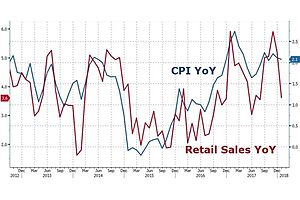 "Lost in the chaos surrounding the blistering January inflation print, i.e. the market's worst-case scenario which sent yields and the dollar soaring, and futures tumbling, was a just as troubling indication that the US consumer has officially tapped out."