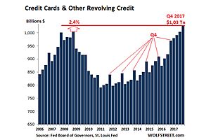 Surging over the past five consecutive quarters, US credit card debt levels are back to the highs they hit just prior to the 2008 financial crisis.