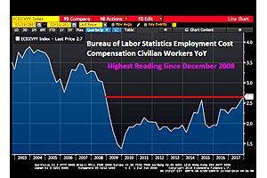 (But Fed Unlikely To Raise Their Target Rate Today) The Bureau of Labor Statistics Employment Cost Compensation Civilian Workers YoY rose to 2.7% YoY. That is the highest reading of employment compensation since Q4 2008. Private-sector wages and salaries rose from a year earlier by 2.8 percent, also matching the best gain of this expansion. Give this great news about the economy, will The Fed…