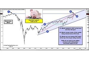 Banks started showing cracks back in 2007 and before long they started breaking support and fell hard. The current bank trend remains UP at this time. The
