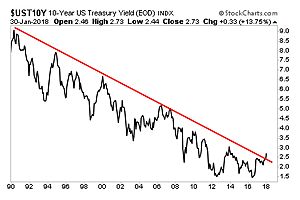 The single most important bond in the world is the US 10-Year Treasury bond. According to modern financial theory, this bond, with a duration that is meant to cover a full economic cycle, is generally considered the “risk free” rate of the return for the entire financial system. Corporate debt, mortgage rates, auto loans, even