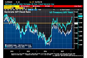 (30Y Mortgage Rates Near Highs Since 2014) As Home Price Growth Hits 6.41% YoY (Seattle Fastest, DC Slowest) The US Treasury 10-year yield has risen to its highest level since 2014 (red line). And Bankrate's 30-year mortgage rate survey is near its highest level since 2014…