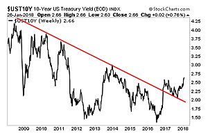 Rates continue to rise, though stocks remain oblivious. The yield on the 10-Year US Treasury continues to soar, with a confirmed breakout from its 10-year downtrend. Now, cynics would ask, “why does this matter? The yield is at the same level as it was in 2009, 2010, 2011, 2013, and 2014.” It matters because throughout