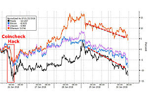 Having bounced back from the Coincheck-hack crash, cryptocurrencies are extending yesterday's ugliness today and accelerating to the downside...