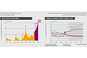 The graphic illustrates the main factors driving the debt upwards, as well as the potential impact down the road.