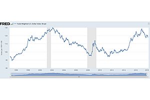 The last time the USD’s trade-weighted value peaked was in 2002. And it didn’t rebound again for six years, diving into a steady decline until 2008. Did the trade-weighted USD just peak again?