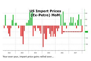 While the world worries about inflation, US import prices (ex petroleum) printed a shocking 0.2% decline MoM in December (a big drop from recent monthly gains and big miss to expectations).