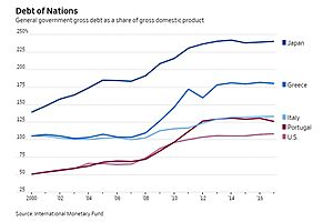 Of major nations, only Japan, Greece, Italy, and Portugal have debt-to-GDP ratios higher than the US.