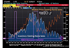 Existing home inventory has been declining since The Great Recession & keeps getting worse as the median price of existing home sales keeps rising.
