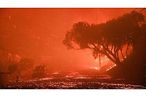 A fast-moving, wind-fueled brush fire has burned about 50,000 acres in Ventura County, officials said.