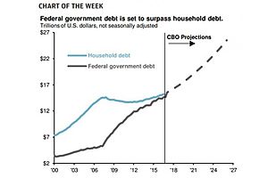 Household debt, fast as it may be rising, is about to be eclipsed for the first time ever by the even faster rising federal government debt.