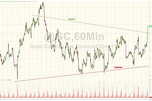 Gold just broke above its 50-day moving average, after bouncing off its 200-day on Tuesday.
