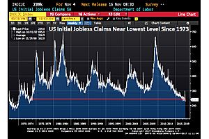 (Too Bad Wage Growth Is Roughly 1/3rd Of 1973 Wage Growth YoY) US initial jobless claims rose slightly to 239k for the week ending November 4th. But initial jobless claims remain near the 44 year low. If we look at the 4 week moving average of initial claims, …